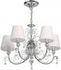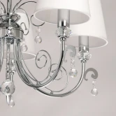 Металлическое основание подвесной люстры гальванизировано в цвет хрома. Источники света закрыты двухслойными текстильными абажурами белого цвета с термостойким акрилом внутри. Абажуры прошиты. Светильник декорирован прозрачным хрусталем.