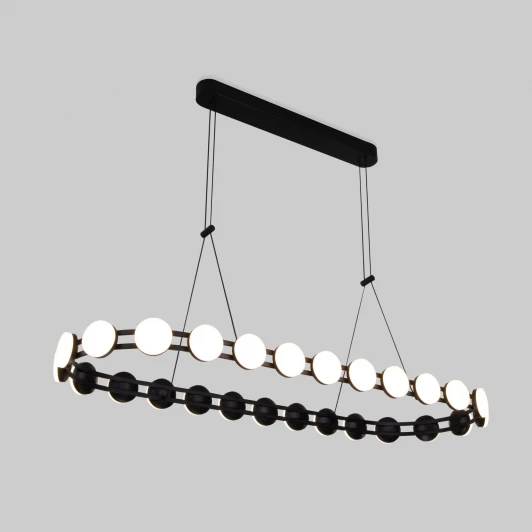 Светильник оснащен 26 плафонами, которые направляют теплое свечение вверх и вниз, создавая уютную атмосферу. Надежное крепление на монтажной пластине упрощает установку, а возможность регулировки по высоте от 270 до 1500 мм позволяет адаптировать светильник под ваш интерьер. Идеально подходит для помещений с разным стилем, от современного до минималистичного.