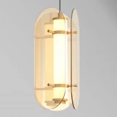 Каркас из металла цвета латунь, плафоны из полупрозрачного стекла теплого янтарного цвета, рассеиватель из белого акрила, регулируемая высота, LED-модуль.