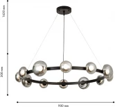 Подвесная люстра в черном цвете каркаса с зеркально-серыми выдувными плафонами. Плафоны оригинальной формы в двух размерах расположены по внешней стороне кольца, а внутренний модуль LED обеспечивает яркое и равномерное освещение