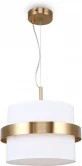 Металлическая арматура, цвет - латунь. Круглый широкий праздничный абажур из ткани белого цвета. Декоративная парящая окантовка из металла в цвет арматуры. Регулируется по длине. Компактные размеры подходят для низких потолков и небольших интерьеров. Источник света — лампа с цоколем Е14.