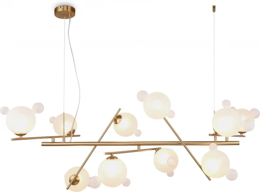 Арматура — металл, цвет— латунь. Белые плафоны из стекла с декоративными “ушками” - напоминают образ знаменитого диснеевского героя. Ассиметричный силуэт создает эффект подвижной игры. Высота подвесных моделей регулируется. Источник света - лампа с цоколем G9