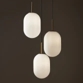 Арматура из металла цвета латуни. Плафоны овальной формы из белого матового стекла. Форма плафонов дает рассеянный свет, максимальная пропускная способность. Источник света лампа. Цоколь G9. Широкая линейка позволяет организовать комплексное освещение в едином стиле.