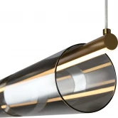 Арматура — металл, цвет — латунь. Плафоны из прозрачного стекла с дымчатым оттенком в форме овала, круга или конуса. Универсальный минималистичный дизайн позволяет составлять комбинации из нескольких подвесов. Регулируемая высота. Тренд «invisible light» - LED-источник света утоплен в основание плафона. Цветовая температура - 3000К.