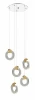 Подвес на круглом основании из металла цвета хром, с прозрачными проводами и массивными хрустальными кольцами с элементами цвета полированного золота. Источник света LED 5х4W 4000К. D410 x H970-1710mm.