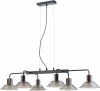 Подвесной светильник Intrigo VL5822P06 от итальянского производителя Vele Luce исполнен из янтарного металла. Модель имеет 6 плафонов из стекла и подходит для установки на потолке в гостиной, кафе, спальне, кухне, над обеденным столом в стиле модерн, лофт. Лампочки с цоколем 6xE27 имеют мощность 360W. Питание от сети 220V. Дополнительные опции: регулировка по высоте. Способ крепления — монтажная пластина. Габариты: длина — 1050 мм, ширина — 500 мм, высота — 1000 мм, длина подвеса — 805 мм. Заказывайте Vele Luce VL5822P06 онлайн по низкой цене с гибкими условиями доставки на Fedomo.ru!