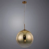 Подвесной светильник Arte Lamp Jupiter Gold A7964SP-1GO от итальянского бренда Arte Lamp исполнен в цвете золото из металла. Модель имеет 1 плафон из стекла и подходит для размещения на потолке в гостиной, кафе, кухне, над кухонным островом, офисе в современном стиле. Лампочка с цоколем 1xE27 оснащена мощностью 60W и освещает площадь до 3 кв. м. Питание от сети 220V. Технические особенности: возможность подключения диммера. Установка производится на пластину. Габариты: длина — 400 мм, высота — 540 мм, диаметр — 400 мм, длина подвеса — 1000мм. Заказывайте Arte Lamp A7964SP-1GO онлайн по низкой цене с гибкими условиями доставки на Fedomo.ru!