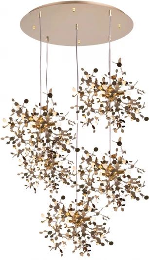 Подвесной светильник Extra L5PR721132 от итальянского бренда Lightstar с листьями, в виде ветки изготовлен из металла в золотом цвете. Рассчитан на лампочки с цоколем 15xG9, мощность 75 Вт. Стиль – арт-деко. Модель имеет 5 плафонов из металла, подходит для установки на потолке в гостиной, в кафе, в спальне, в магазине. Питание от сети 220 В. Степень защиты от влаги и пыли IP20. Способ крепления – монтажная пластина. Габариты: ширина 900 мм, высота 1500 мм. Дополнительные функции: регулировка по высоте. Заказывайте Lightstar L5PR721132 онлайн по низкой цене с гибкими условиями доставки на Fedomo.ru!