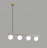 Подвесной светильник Lingdal V5090-4P от итальянского бренда Moderli исполнен в золотистом цвете из металла, имеет 4 плафона из стекла. Светильник подходит для размещения на потолке в гостиной, кафе, кухне, над кухонным островом, офисе в современном стиле. Лампочки с цоколем 4xG9 с мощностью 120W освещают площадь до 18 кв. м. Напряжение питания 220V. Монтаж производится на пластину. Срок службы ламп составит до 50000 ч. Габариты: длина — 900 мм, ширина — 100 мм, высота — 1500 мм. Заказывайте Moderli Lingdal V5090-4P онлайн по низкой цене с гибкими условиями доставки на Fedomo.ru!