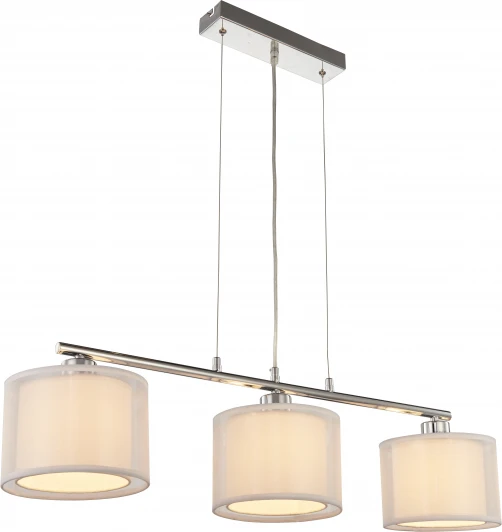 Современный подвесной светильник из серии Room. Плафоны выполнены из двух слоев ткани для более мягкого и комфортного освещения. Простой и лаконичный дизайн светильника дополнит любой интерьер в стиле модерн и подойдет для освещения спальни, кухни или обеденной зоны. В качестве источника света могут быть использованы лампы c цоколем E27. При монтаже высоту светильника можно отрегулировать с помощью подвесных тросов.