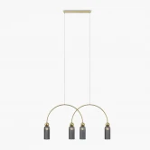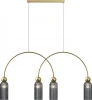 Металлическая арматура в цвете золота. Плафоны стеклянные нескольких цветов: коньячный, дымчатый, белый, серый. Источник света: цоколь Е14. Высота регулируется сегментами штанги или с помощью трехметрового провода. Серия применима в помещениях с высокими потолками. Поверхность стеклянных плафонов рифленая, усиливающая световые эффекты.