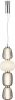 Металлическая арматура, цвет - золото, хром. Микс плафонов округлых и вытянутых форм из белого матового и прозрачного стекла с сетчатым и с линейным повторяющимся рельефным рисунком. Регулируемая высота подвесных моделей, провод - 3 метра. LED-источник света, цветовая температура 3000К.