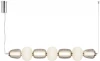 Металлическая арматура, цвет - золото, хром. Микс плафонов округлых и вытянутых форм из белого матового и прозрачного стекла с сетчатым и с линейным повторяющимся рельефным рисунком. Регулируемая высота подвесных моделей, провод - 3 метра. LED-источник света, цветовая температура 3000К.