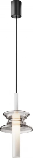 Уникальная многослойная конструкция в образе звуковой волны. Магнитная потолочная чаша из металла без видимых креплений. Плафон-трубка из белого полупрозрачного стекла. Декоративный волнообразный звуковой" элемент из литого стекла в центре плафона. Цвета - синий, черный, золото, серый. Источник света в центе плафона-трубки - лампа с цоколем G9."