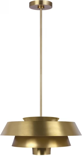 BRISBIN – трёхъярусный шедевр в классическом стиле середины ХХ века. Привлекает внимание эффектной игрой многоуровневых концентрических деталей. Белые изнутри плафоны, симметрично расположенные друг над другом, мягко рассеивают свет.