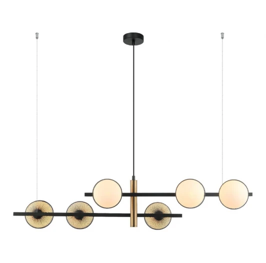 Подвесной светильник Favourite Odd 2826-6P от немецкого производителя Favourite исполнен из металла черного цвета. Модель имеет 6 плафонов из стекла и подходит для размещения на потолке в гостиной, кухне, офисе в современном стиле. Лампочки с цоколем 6xG9 оснащены мощностью 25W и освещают площадь до 10 кв. м. Питание производится от сети 220V. Монтаж производится на пластину. Габариты: ширина — 290 мм, высота — 1770 мм. Заказывайте Favourite 2826-6P онлайн по низкой цене с гибкими условиями доставки на Fedomo.ru!