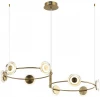 Для отделки светильников Indovero использовали оригинальное плоское стекло. Центральные вставки из латуни на стекле приглушают свет — это намного комфортнее для глаз. Арматура окрашена в цвет латунь, который делает дизайн более нейтральным и подходящим для разных помещений. Диаметр колец 45 см