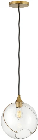 Подвесной светильник SKYE американского бренда Hinkley. Завораживающая ассиметрия форм и явное влияние модерна середины ХХ века. Прозрачный плафон-сфера опоясан тонким латунным кольцом. Отверстие в плафоне смещено от центра. Детали с покрытием «традиционная латунь». Рекомендуем сочетать с винтажными лампами, чтобы подчеркнуть эффектность светильника.