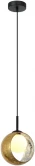 Подвесной светильник сериии RAUNDI выполнен из металлической арматуры, окрашенной в черный цвет и декорирован двумя стеклянными плафономи . Белый матовый плафон из стекла в форме сферы и декоративный стеклянный плафон ввиде кольца окрашен в золотистый цвет. Эксклюзивность серии придает индивидуальный рисунок ручной работы иммитируещий узоры инея.