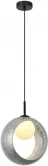 Подвесной светильник сериии RAUNDI выполнен из металлической арматуры, окрашенной в черный цвет и декорирован двумя стеклянными плафономи . Белый матовый плафон из стекла в форме сферы и декоративный стеклянный плафон ввиде кольца окрашен в серебристый цвет. Эксклюзивность серии придает индивидуальный рисунок ручной работы иммитируещий узоры инея.