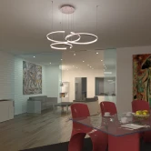 Подвесной светильник Eurosvet Gap 90180/3 — это пример современного дизайнерского подхода, объединяющего лаконичность и функциональность. Его металлическое основание с элегантной отделкой под никель подчеркивает строгость форм, делая акцент на современных минималистичных интерьерах. Расположение LED-плафонов из матового акрила в форме кольца добавляет элемент воздушности и легкости, создавая мягкий рассеянный свет благодаря белому оттенку материалов.