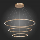 Подвесной светильник светодиодный с кольцом St605 Down ST605.243.114 от итальянского бренда ST Luce исполнен в золотистом цвете из металла. Модель имеет 3 рассеивателя из металла и акрила и подходит для размещения в гостиной, кафе, кухне, кабинете, офисе в стиле хай-тек. Лампочки с цоколем LED и максимальной мощностью 114W имеют цветовую температуру 4000К и освещают пространство площадью до 18 кв. м. Питание производится от сети 220V. Способ крепления — на пластину. Диаметр — 800 мм. Заказывайте ST Luce ST605.243.114 онлайн по низкой цене с гибкими условиями доставки на Fedomo.ru!