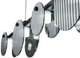 Подвесной светильник серии Relux имеет металлическую арматуру, окрашенную в черный цвет и рифленый плафон из стекла круглой формы, гальванизированного в дымчатый цвет. Подвесной светильник комплектуется пультом дистанционного управления 2,4G и драйвером высокого качества с европейским стандартом TV. Пульт дистанционного управления обеспечивает переключение трех режимов световой температуры и диммирование.