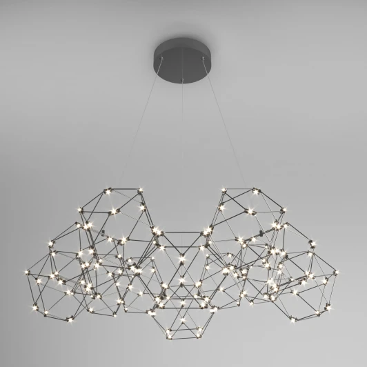 Подвесной светильник светодиодный Uma a061154 90169/12 черный жемчуг от бренда Eurosvet изготовлен из металла в черном цвете. Рассчитан на диодные источники света, мощность 55 Вт. Стиль – арт-деко. Модель имеет 1 плафон из металла, подходит для установки на потолке в гостиной, в кафе, в спальне, в офисе, 144 светодиода. Освещаемая площадь до 8 кв. м, цветовая температура 4000 К, индекс цветопередачи >80 Ra, световой поток 3114 lm, срок службы составит не менее 50000 часов. Питание от сети 220 В. Степень защиты от влаги и пыли IP20. Способ крепления – монтажная пластина. Габариты: длина 850 мм, ширина 930 мм, высота 700 – 1500 мм. В комплект входят: лампочки. Заказывайте Eurosvet a061154 90169/12 черный жемчуг онлайн по низкой цене с гибкими условиями доставки на Fedomo.ru!