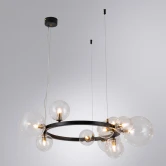 Подвесной светильник Vincent A7790SP-10BK от итальянского бренда Arte Lamp исполнен в черном цвете из металла, имеет 10 плафонов из стекла. Светильник подходит для размещения на потолке в гостиной, кухне, кабинете, офисе в стиле модерн. Лампочки с цоколем 10xG9 с мощностью 400W освещают площадь до 15 кв. м. Напряжение питания 220V. Монтаж производится на пластину. Габариты: длина — 760 мм, ширина — 530 мм, высота — 270 мм, длина подвеса — 1100 мм. Заказывайте Arte Lamp Vincent A7790SP-10BK онлайн по низкой цене с гибкими условиями доставки на Fedomo.ru!