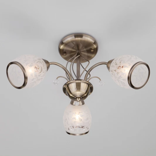 Люстра потолочная 30026/3 античная бронза из серии 30026 от компании Eurosvet устанавливается на монтажную пластину. Классическая люстра с лепестками прекрасно подойдет в качестве источника основного света для гостиной, спальни, кухни, оформленных в стиле модерн. Основной цвет модели - белый, материал арматуры - металл. Люстра имеет 3 плафона, материал изготовления - стекло, металл. Модель оснащена цоколем E27 (3xE27), имеет 3 лампочки с общей мощностью 180W и напряжением 220V. Светильник поддерживает подключение диммера. Габариты: диаметр - 490 мм. Лампочки в комплект не входят. Лучшая цена и условия доставки на Eurosvet 30026/3 античная бронза в интернет-магазине Fedomo.ru.