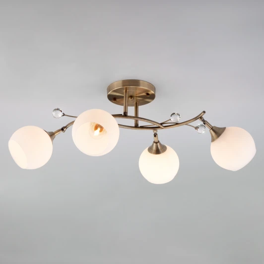 Люстра потолочная 9604/4 античная бронза из серии 9604 от компании Eurosvet устанавливается на монтажную пластину. Люстра украшена хрусталем и прекрасно подойдет в качестве источника основного света для гостиной, спальни, кухни, кабинета, оформленных в стиле модерн. Основной цвет модели - белый, материал арматуры - металл. Люстра имеет 4 плафона со свечением вниз, материал изготовления - стекло. Модель оснащена цоколем E27, имеет 4 лампочки с общей мощностью 160W и напряжением 220V. Светильник поддерживает подключение диммера. Габариты: ширина - 270 мм. Лучшая цена и условия доставки на Eurosvet 9604/4 античная бронза в интернет-магазине Fedomo.ru.