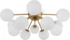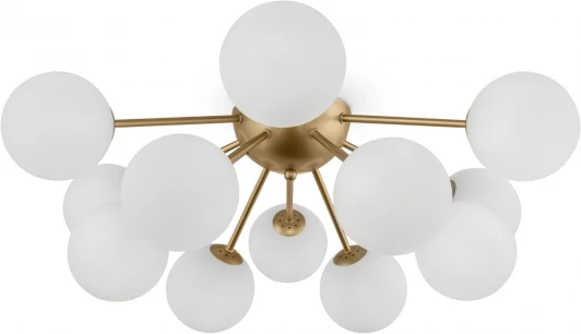 Оригинальная композиция, объединяющая стеклянные плафоны-сферы и металлическую арматуру цвета латуни, актуальна для освещения современных интерьеров Благодаря большому ассортименту серии и наличию в ней люстр различного диаметра и высоты, каждый сможет выбрать светильник необходимых размеров. Разнообразие конструктивных решений также не оставляет равнодушным: ассиметричные светильники и модели с дугообразными рожками-лучами займут достойное место в любой обстановке. Люстры на 12, 9 и 6 плафонов позволяют подобрать оптимальную яркость и мощность подсветки, исходя из размеров помещения.