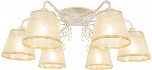 Потолочная люстра AM341120 341120/6 WT+G от российского бренда Arte Milano изготовлена из металла в золотом цвете. Рассчитана на лампочки с цоколем 6xE14, мощность 240 Вт. Стиль – модерн. Модель имеет 6 абажуров из ткани, подходит для установки на потолке в гостиной, в прихожей и коридоре, в спальне, на кухне, в зале. Освещаемая площадь до 12 кв. м. Питание от сети 220 В. Степень защиты от влаги и пыли IP20. Способ крепления – монтажная пластина. Габариты: длина 220 мм, высота 220 мм, диаметр 670 мм. Заказывайте Arte Milano 341120/6 WT+G онлайн по низкой цене с гибкими условиями доставки на Fedomo.ru!