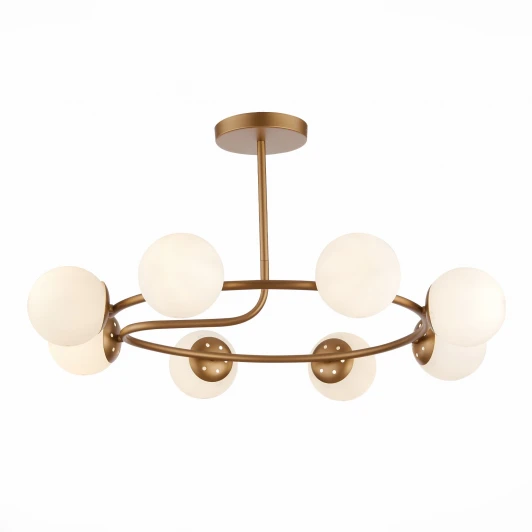 Потолочная люстра на штанге SLE220602-08 из серии Evoluce Calabria от итальянского производителя Evoluce исполнена в золотистом цвете из металла. Модель имеет 8 плафонов из стекла и подходит для размещения на потолке в гостиной, спальне, кухне, кабинете, офисе в стиле модерн. Лампочки с цоколем 8xE14 потребляют общую мощность 320W и освещают площадь до 16 кв. м. Дополнительные опции: возможность подключения диммера. Монтаж производится на пластину. Габариты: высота — 385 мм, диаметр — 770 мм. Заказывайте Evoluce SLE220602-08 онлайн по низкой цене с гибкими условиями доставки на Fedomo.ru!