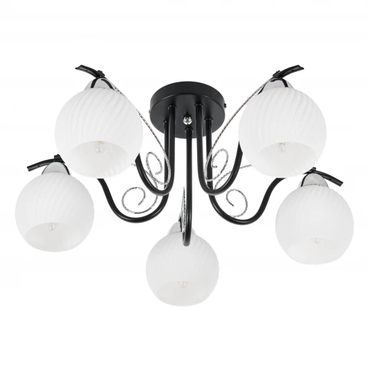 Потолочная люстра Daniella MR1570-5C от российского производителя MyFar исполнена из металла, цвет черный, хром. Модель имеет 5 плафонов из стекла и подходит для установки на потолке в гостиной, прихожей и коридоре, спальне, зале в современном стиле. Лампочки с цоколем 5xE27 имеют мощность 300W и освещают площадь до 12 кв. м. Питание от сети 220V. Индекс пыле- и влагозащиты IP24. Дополнительные опции: можно подключить диммер. Способ крепления — монтажная пластина. Габариты: длина — 550 мм, ширина — 550 мм, высота — 250 мм, диаметр — 550 мм. Заказывайте MyFar MR1570-5C онлайн по низкой цене с гибкими условиями доставки на Fedomo.ru!