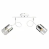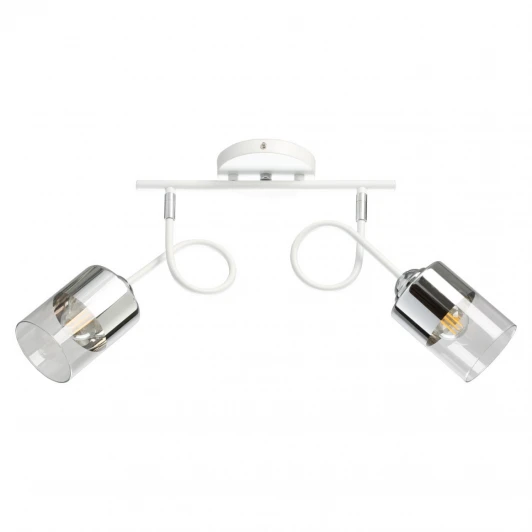 Металлическое основание потолочного светильника окрашено в белый цвет. Отдельные элементы гальванизированы в цвет хрома. Стеклянные плафоны частично гальванизированы в цвет хрома