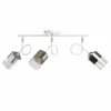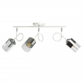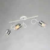 Металлическое основание потолочного светильника окрашено в белый цвет. Отдельные элементы гальванизированы в цвет хрома. Стеклянные плафоны частично гальванизированы в цвет хрома