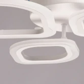 Металлическое основание потолочной люстры окрашено в белый цвет. Корпус плафона выполнен из сплава алюминия с цинком и окрашен в цвет основания. Светодиодный источник света закрыт матовым акрилом.