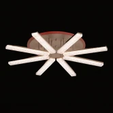 Металлическое основание потолочной люстры окрашено в белый цвет. Светодиодные источники света у потолочной чаши закрыты белым матовым акрилом, на рожках - прозрачным фактурным акрилом.