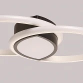 Металлическое основание потолочной люстры окрашено в черный цвет. Корпус плафонов выполнен из сплава алюминия с цинком и окрашен в белый и черный цвета. Светодиодные источники света закрыты белым матовым силиконом. Люстра в центре декорирована белым акрилом. Наличие ПДУ позволяет управлять режимами освещения.