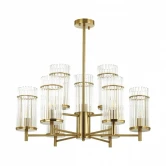 Formia - невероятно элегантная линия с оригинальными плафонами, состоящими из множества стеклянных трубочек, которые при включенном свете создают буйство переливов.Особенное благородство придает светильнику золотистый матовый цвет основания. Люстра на 9 ламп диаметром 76 см способна освещать большие пространства и будет идеально смотреться в больших холлах.