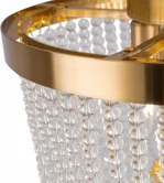 Материал абажура — хрустальное стекло, цвет — прозрачный. Металлическая арматура в цвете латунь. Потолочный светильник не регулируется по высоте. Источник света — лампы с цоколем Е14. Степень защиты — IP20.