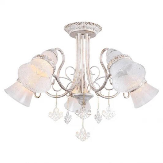 Люстра потолочная GRLSP-8100 из серии Gila от компании Lussole Lgo устанавливается на монтажную пластину. Классическая люстра прекрасно подойдет в качестве источника основного света для гостиной, спальни. Основной цвет модели - золото, белый, материал арматуры - металл. Люстра имеет 5 плафонов со свечением вниз, материал изготовления - глянцевое стекло. Модель оснащена цоколем E14 (5xE14), имеет 5 лампочек с общей мощностью 30W и напряжением 220V. Светильник имеет цветовую температуру 4500К. Габариты: ширина - 640 мм, высота - 420 мм. В комплекте есть лампочки. Лучшая цена и условия доставки на Lussole Lgo GRLSP-8100 в интернет-магазине Fedomo.ru.