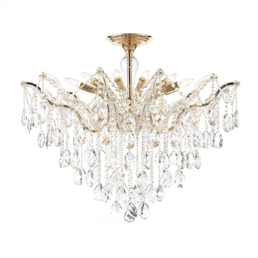 Семь Огней создает продукт от эскиза до готового шедевра. Над созданием светильников трудятся одни из лучших дизайнеров и конструкторов. Наша компания предъявляет высокие требования к производимой продукции, что подтверждено сертификатами качества.<br>ПРЕИМУЩЕСТВА<br>Элегантный и стильный дизайн<br>Гальваническое покрытие цвета Золото<br>Хрусталь непревзойденного качества<br>Хорошие осветительные характеристики благодаря многогранности хрусталя<br>ПРИМЕНЕНИЕ<br>Предназначена для основного освещения помещений<br>Подойдет в гостиную, зал, спальню, столовую с невысокими потолками<br>КОНСТРУКЦИЯ И МАТЕРИАЛЫ<br>Люстра изготовлена из высококачественных материалов и является безопасной для человека, животных и окружающей среды<br>Используемые материалы: металл, хрусталь<br>Источник света - лампы накаливания мощностью до 40Вт, светодиодные лампы мощностью до 12Вт<br>Крепление - накладным способом с помощью шурупов<br>Крепеж подойдет под все виды потолков: бетон, гипсокартон, натяжные и деревянные потолки.