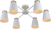 Потолочная люстра на штанге H170-6 из серии Hiper Kim от английского производителя Hiper исполнена в белом цвете из металла и дерева. Модель имеет 6 плафонов из металла и подходит для размещения на потолке в гостиной, кухне, кабинете в стиле модерн, скандинавский. Лампочки с цоколем 6xE27 потребляют общую мощность 360W и освещают площадь до 18 кв. м. Дополнительные опции: возможность подключения диммера. Монтаж производится на пластину. Габариты: высота — 260 мм, диаметр — 780 мм. Заказывайте Hiper H170-6 онлайн по низкой цене с гибкими условиями доставки на Fedomo.ru!