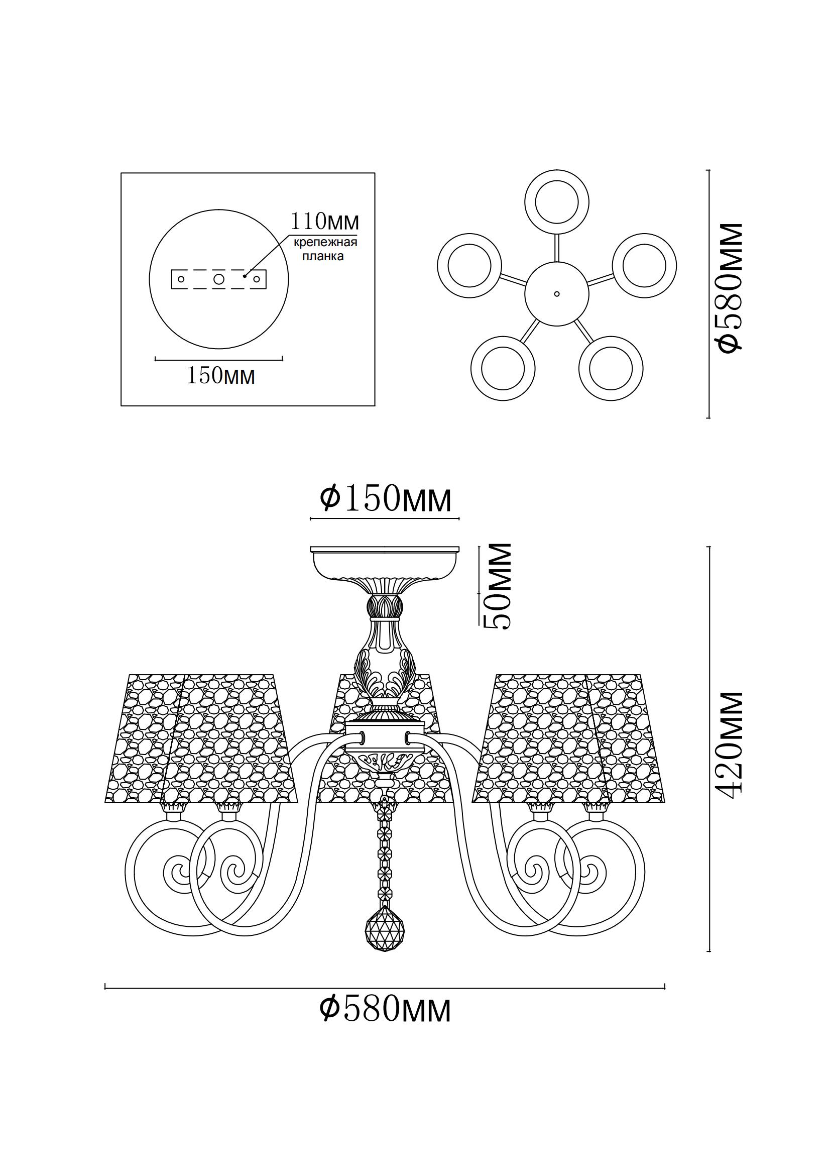Потолочная люстра Luna MR1310-5C от российского производителя MyFar исполнена из белого с золотым металла. Модель имеет 5 абажуров из металла и подходит для установки на потолке в гостиной, прихожей и коридоре, спальне, зале в классическом стиле. Лампочки с цоколем 5xE14 имеют мощность 300W и освещают площадь до 10 кв. м. Питание от сети 220V. Дополнительные опции: можно подключить диммер. Способ крепления — монтажная пластина. Габариты: высота — 420 мм, диаметр — 580 мм. Заказывайте MyFar MR1310-5C онлайн по низкой цене с гибкими условиями доставки на Fedomo.ru!