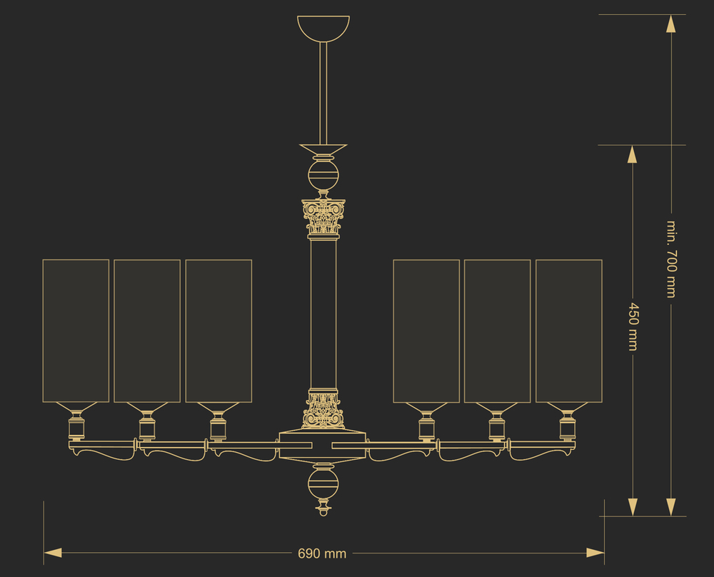 MER-ZW-6(N) Потолочная люстра на штанге Kutek Merano-szklany Klosz MER-ZW-6(N) (220V)