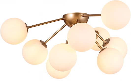 Потолочная люстра светодиодная в форме шара Monico H233-9 от английского производителя Hiper исполнена в цвете латунь из металла. Модель имеет 9 плафонов из стекла и подходит для размещения на потолке в гостиной, прихожей и коридоре, спальне, зале в современном стиле. Лампочки с цоколем 9xG9 оснащены мощностью 320W и освещают площадь до 18 кв. м. Питание от сети 220V. Монтаж производится на пластину. Габариты: длина — 500 мм, ширина — 500 мм, высота — 200 мм, диаметр — 500 мм. Заказывайте Hiper Monico H233-9 онлайн по низкой цене с гибкими условиями доставки на Fedomo.ru!