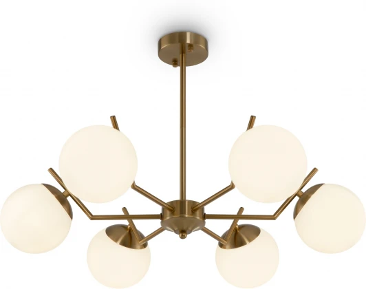 Обращение к природным формам наполняет современный дизайн глубоким смыслом. Визуальный образ – вдохновение для серии Moonrock – это лунный диск, символ изменчивости окружающего мира. Строгая геометрия металлической арматуры подчеркнута оттенком латуни. Стеклянные плафоны-сферы, окрашенные в матовый белый цвет, смотрятся легко и утонченно. Компактные потолочные модели подойдут для невысоких потолков. Серию составляют люстры, рассчитанные на 6 и 8 ламп. Они прекрасно интегрируются в пространство гостиной, спальни или кухни. Используйте их в интерьерах, выполненных в актуальных стилях: mid-century modern, сканди, минимализм.