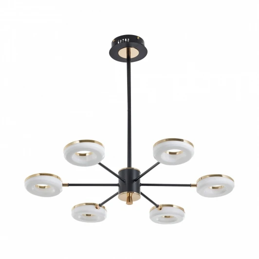 Потолочная люстра на штанге 277499/6 BK/GD от российского бренда Arte Milano изготовлена из металла в черном цвете. Рассчитана на диодные источники света, мощность 108 Вт. Стиль – модерн. Модель имеет 6 плафонов из акрила, подходит для установки на потолке в гостиной, в кафе, в спальне, на кухне,, цветовая температура 3000-6500 К. Питание от сети 220 В. Степень защиты от влаги и пыли IP20. Способ крепления – монтажная пластина. Габариты: высота 680 мм, диаметр 780 мм. Заказывайте Arte Milano 277499/6 BK/GD онлайн по низкой цене с гибкими условиями доставки на Fedomo.ru!